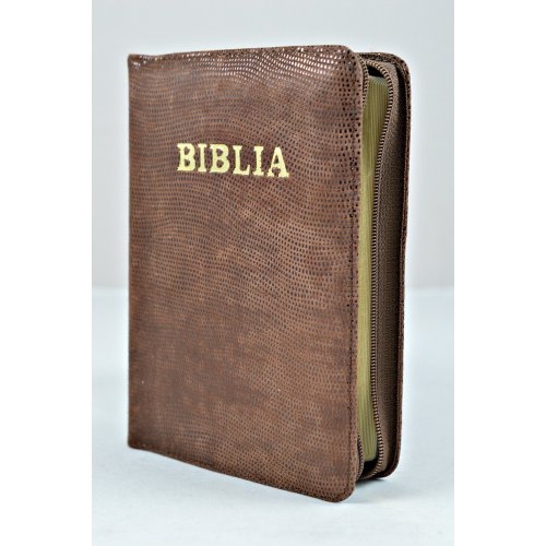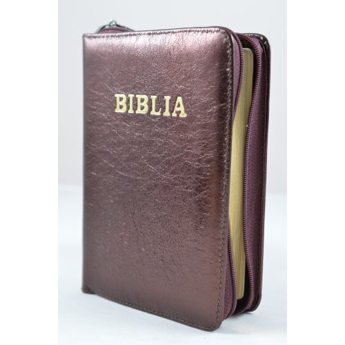 Biblie din piele, dimensiune mica, maro, fermoar, cuv. lui Isus in rosu [043 A]