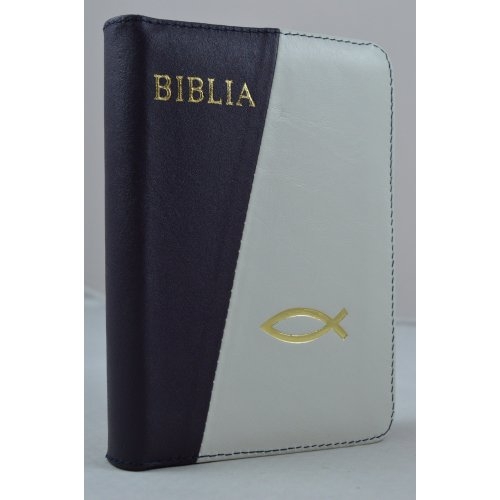 Biblie din piele, dimensiune mica, mov/crem , simbol peste, cuv. lui Isus in rosu [043 A]