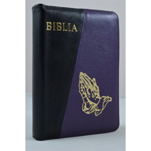 Biblie din piele, dimensiune, negru/mov , fermoar, simbol maini in ruga, cuv. lui Isus in rosu [043 A]