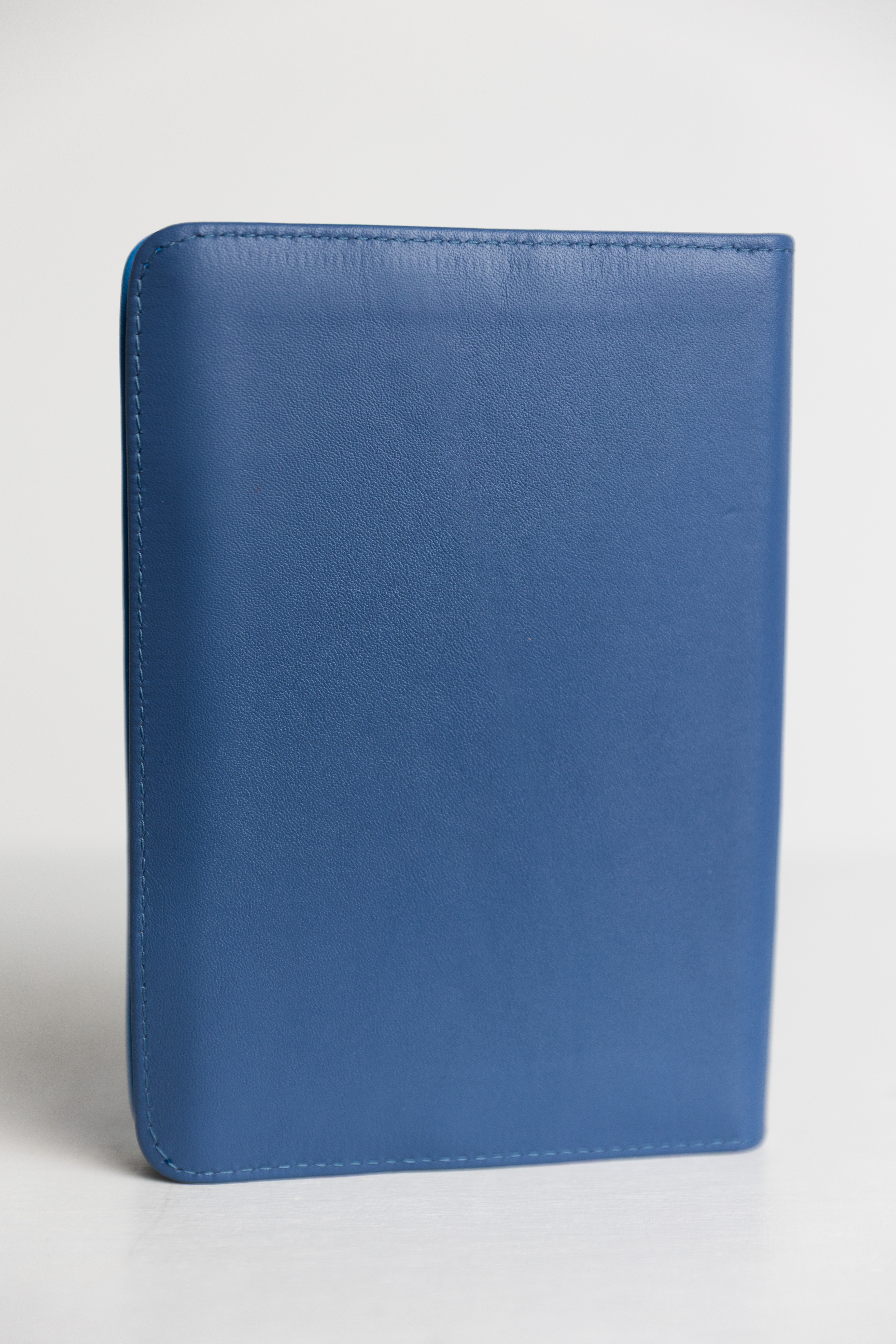 Biblie din piele, marime medie, albastru otel cu albastru deschis, fermoar, index, margini aurii, maini in ruga [SB 057 PFI]