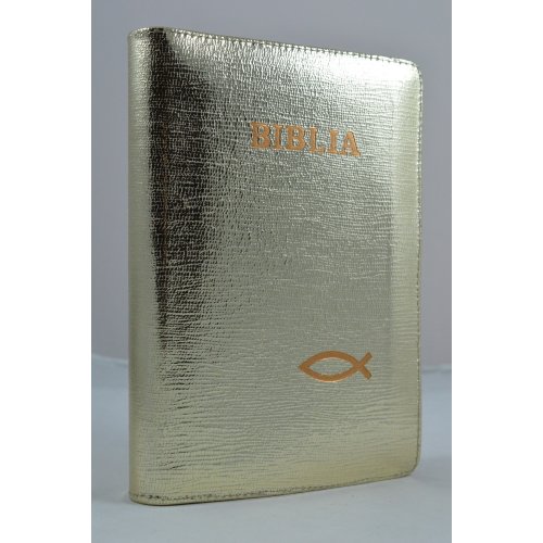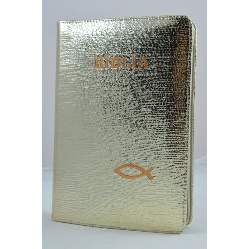 Biblie din piele, marime medie,auriu-sidefat cu peste, fermoar, index, margini aurii, cuv. lui Isus cu rosu [SB 057 PFI]