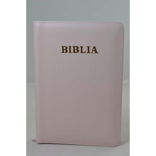Biblie din piele, marime medie, bej deschis, fermoar, index, margini aurii, cuv. lui Isus cu rosu [SB 057 PFI]
