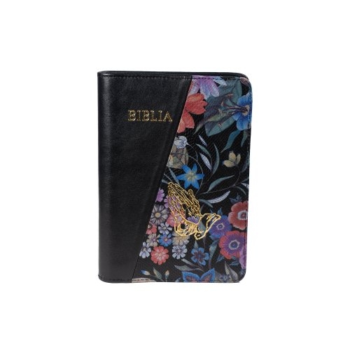Biblie din piele, marime medie, culoare doua culori negru si negru cu flori , fermoar, index, margini aurii, cuv. lui Isus cu rosu [SB 057 PFI]