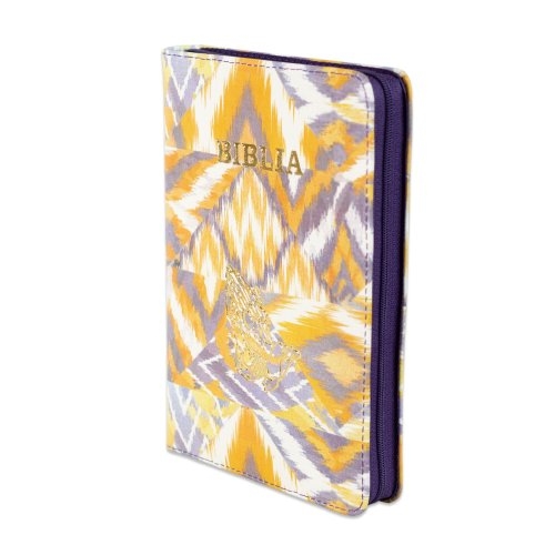 Biblie din piele, marime medie, culoare multicolor, simbol maini in rugaciune, fermoar, index, margini aurii, cuv. lui Isus cu rosu [SB 057 PFI]