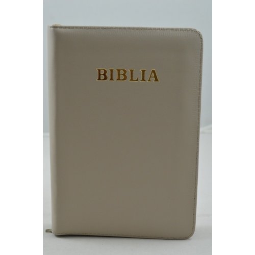 Biblie din piele, marime medie, culoare ocru, simpla, fermoar, index, margini aurii, [SB 057 PFI]