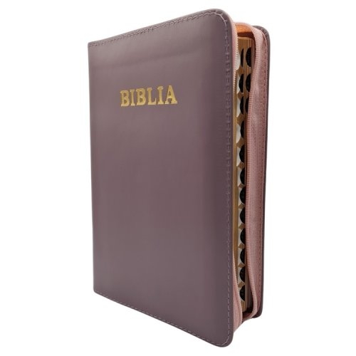 Biblie din piele, marime medie, culoare, plămâniu, fermoar, index, margini aurii, cuv. lui Isus cu rosu [SB 057 PFI]