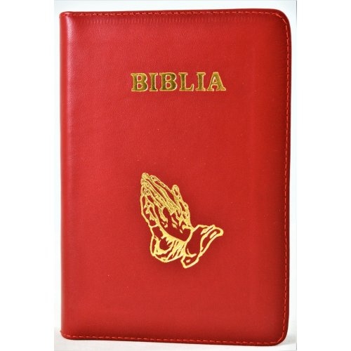 Biblie din piele, marime medie, culoare rosie, simbol maini in rugaciune, fermoar, index, margini aurii, [SB 057 PFI]