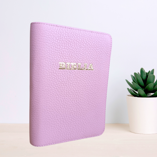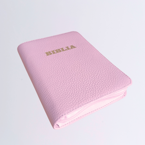 Biblie din piele, marime medie, culoare roz, fermoar, index, margini aurii, cuv. lui Isus cu rosu [SB 057 PFI]