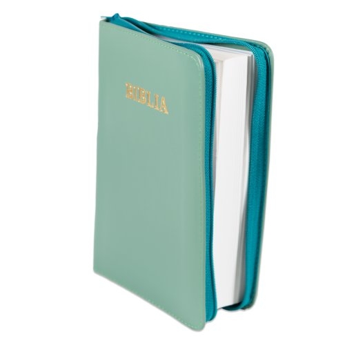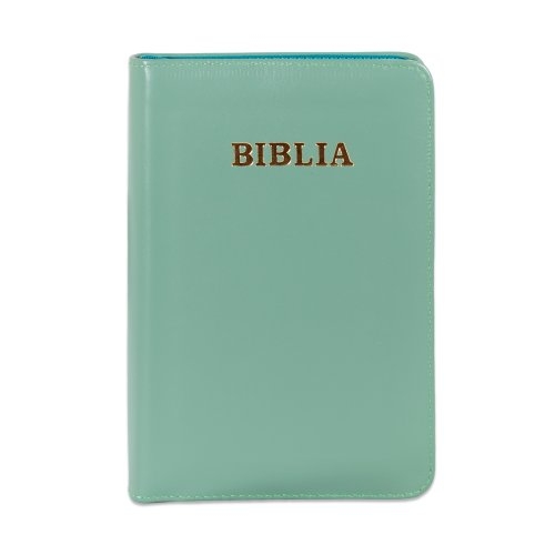 Biblie din piele, marime medie, culoare verde mint, fermoar, margini albe,cuv. lui Isus cu rosu [053]