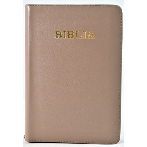 Biblie din piele, marime medie, kaki inchis, fermoar, index, margini aurii, cuv. lui Isus cu rosu [SB 057 PFI]