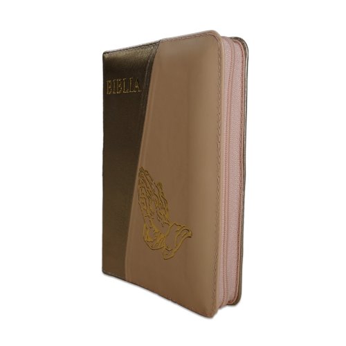 Biblie din piele,marime mica, culoare argintiu sidefat cu crem, fermoar, margini albe, simbolul maini in rugaciune, cuv. lui Isus in rosu [043 PF]