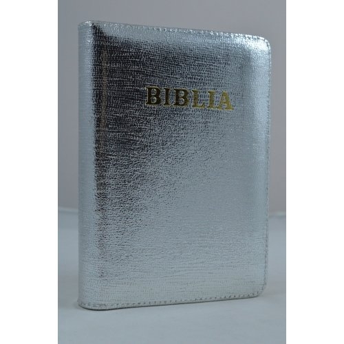 Biblie din piele, mica,argintiu sidefat, fermoar, aurita, cuv. lui Isus in rosu [043 A]