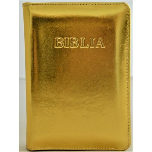 Biblie din piele, mica, auriu, fermoar, margini albe, cuv. lui Isus in rosu [043 PF]