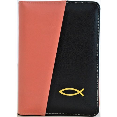 Biblie din piele, mica, culoare somon / negru, fermoar, margini albe, simbolul peste, cuv. lui Isus in rosu [043 PF]