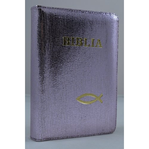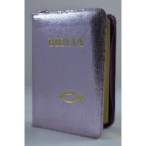 Biblie din piele, mica,lila sidefat, fermoar, aurita, cuv. lui Isus in rosu [043 A]