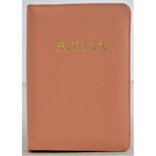 Biblie din piele, mica, portocaliu deschis, fermoar, margini albe, cuv. lui Isus in rosu [043 PF]
