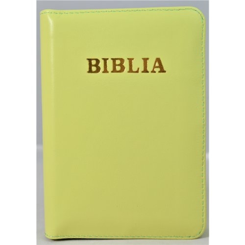 Biblie din piele, mica, verde deschis, fermoar, margini albe, cuv. lui Isus in rosu [043 PF]
