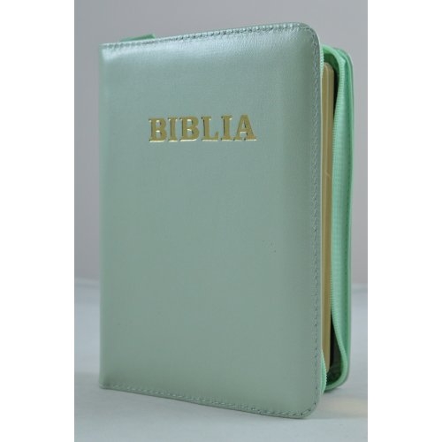 Biblie din piele, mica,vernil, fermoar, aurita, cuv. lui Isus in rosu [043 A]