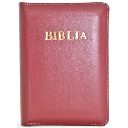 Biblie din piele, mica, visiniu, fermoar, margini albe, cuv. lui Isus in rosu [043 PF]