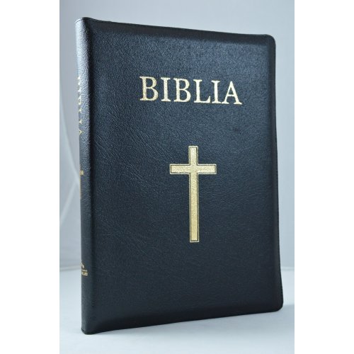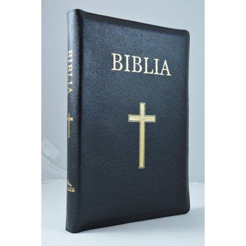 Biblie din piele neagra, mare, cu fermoar, index, cu cruce [VS 073 PFI]