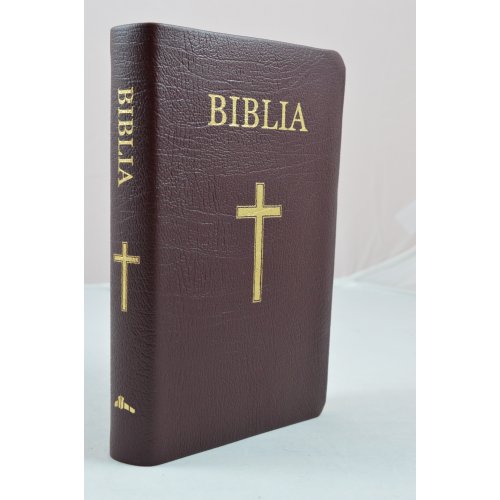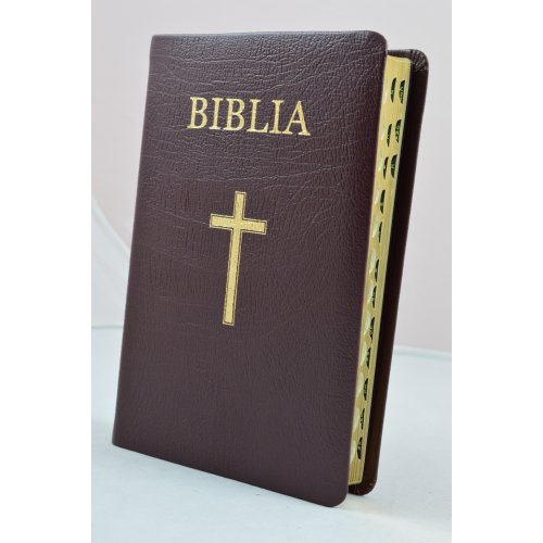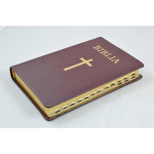 Biblie din piele visinie, medie, cu index pe lateral, margini aurii, cu cruce [063 PR]