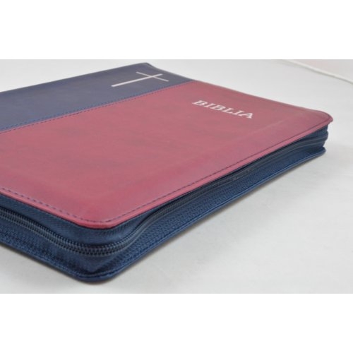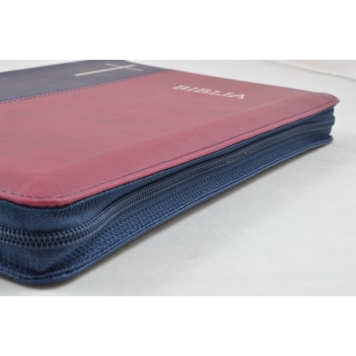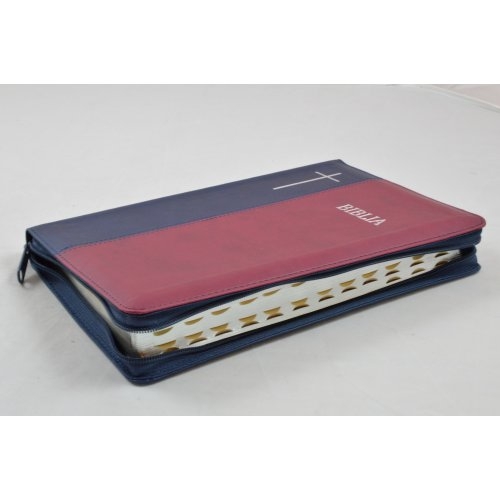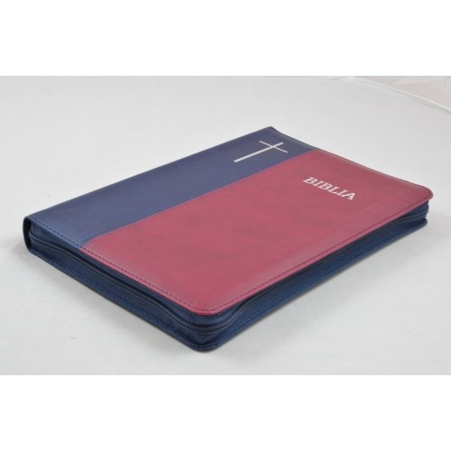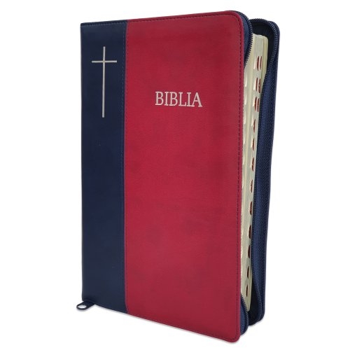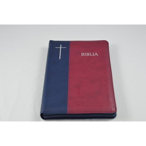 Biblie mare, bleumarin / visiniu, fermoar, index, cuv. Isus cu rosu