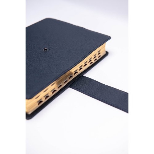 Biblie mare, piele, bleumarin, bareta cu capsa, index, margini aurii, cuv. Isus cu rosu [SI 073 BAR ]