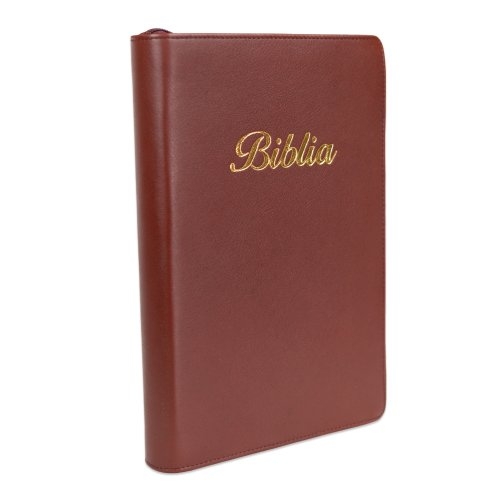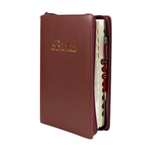 Biblie mare, piele, culoare, bordo, fermoar, index, margini argintii, cuv. Isus cu rosu + inel pentru pix [MAR 073 PFI]