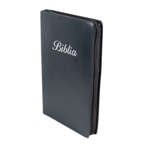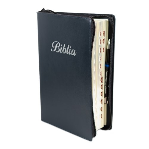 Biblie mare, piele, culoare gri antracit , fermoar, index, margini argintii, cuv. Isus cu rosu + inel pentru pix [MAR 073 PFI]