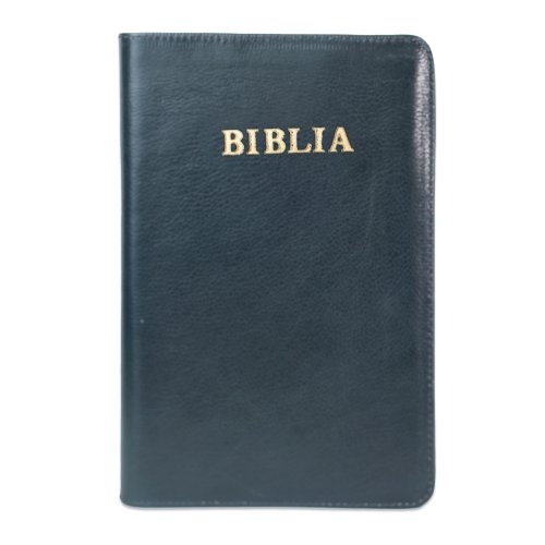 Biblie mare, piele, culoare gri închis texturat, fermoar, index, margini argintii, cuv. Isus cu rosu [SI 073 PFI]
