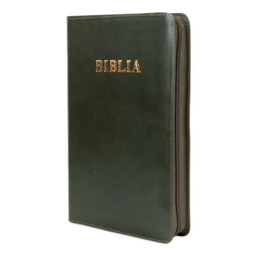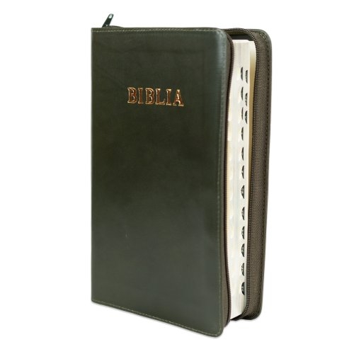 Biblie mare, piele, culoare kaki, fermoar, index, margini argintii, cuv. Isus cu rosu [SI 073 PFI]