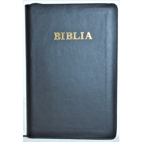 Biblie mare, piele, culoare maro inchis, fermoar, index, margini argintii, simbol simpla, cuv. Isus cu rosu [SI 073 PFI]