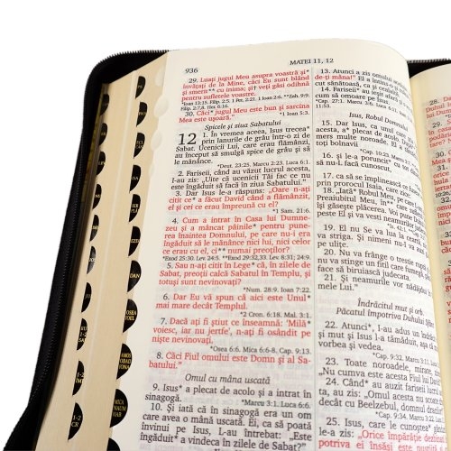 Biblie mare, piele, culoare maro inchis, fermoar, index, margini argintii, cuv. Isus cu rosu, harti [MAR 073 PFI]