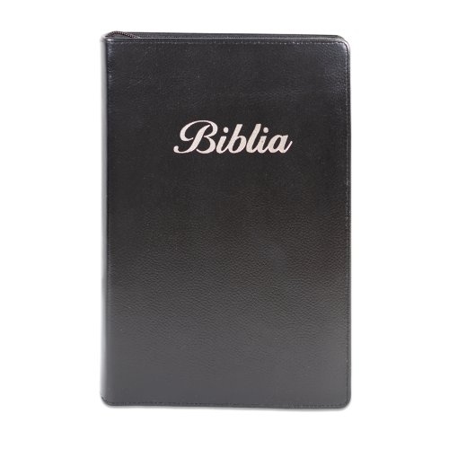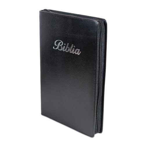 Biblie mare, piele, culoare neagra, fermoar, index, margini argintii, cuv. Isus cu rosu + inel pentru pix [MAR 073 PFI]
