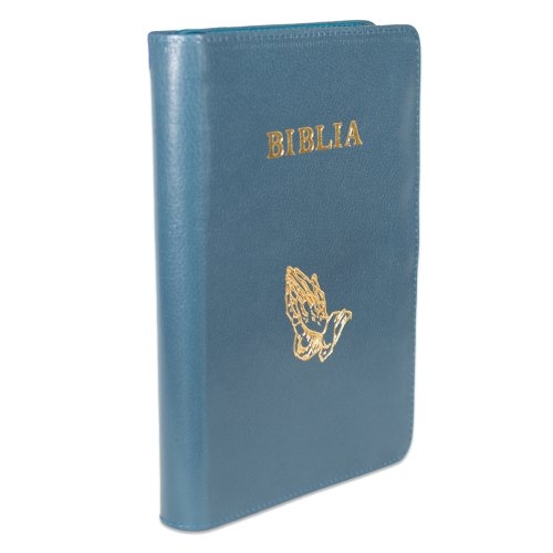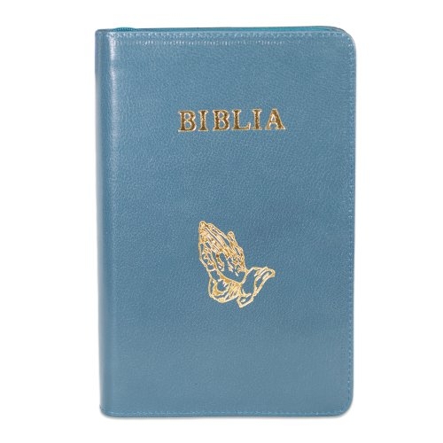 Biblie mare, piele, culoare nuanta de verde, cu striatie, fermoar, index, margini argintii, simbol maini in ruga, cuv. Isus cu rosu [SI 073 PFI]