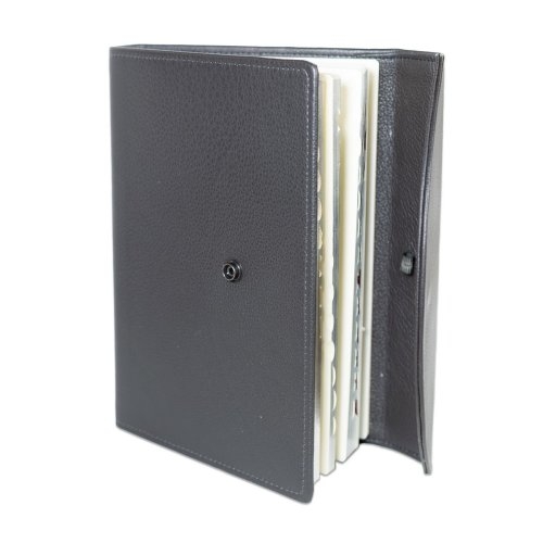 Biblie mare, piele, gri, clapeta cu capsa, index, margini argintii, cuv. Isus cu rosu + inel pentru pix [MAR 073 PCI]
