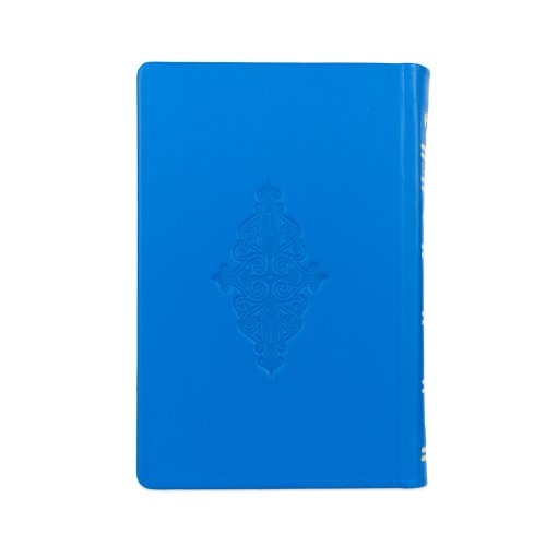 Biblie mare, piele, handmade, albastru deschis, margini aurii, cuv. Isus cu rosu [SI 076 HM]