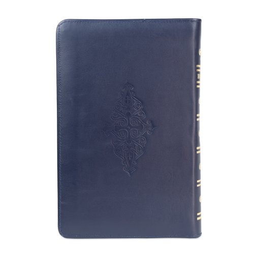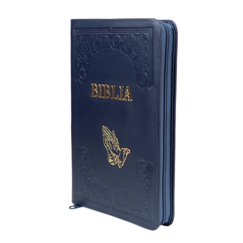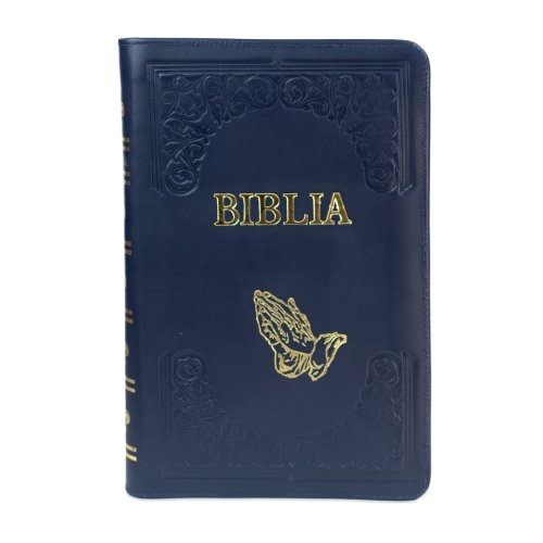 Biblie mare, piele, handmade, bleumarin închis, index, margini aurii, cuv. Isus cu rosu [SI 076 HM]