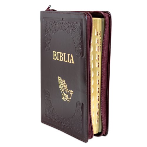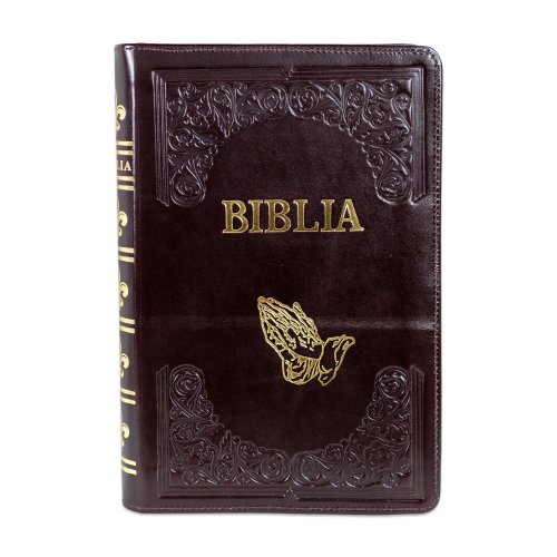 Biblie mare, piele, handmade, bordo închis, index, margini aurii, cuv. Isus cu rosu [SI 076 HM]