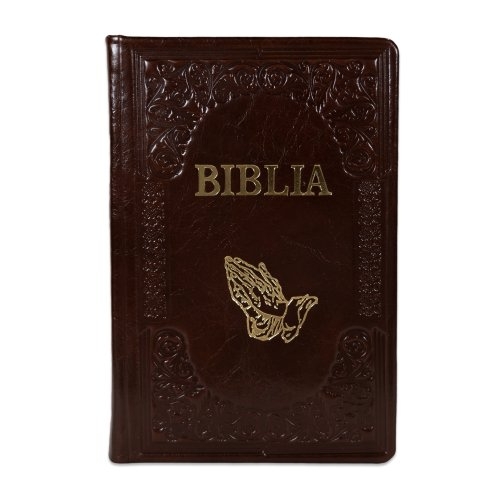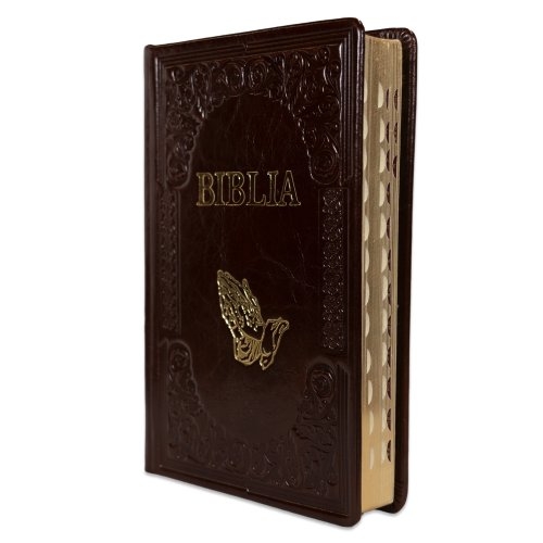 Biblie mare, piele, handmade, bordo închis, simbol mâini în rugăciune, index, margini aurii, cuv. Isus cu rosu [SI 076 HM]