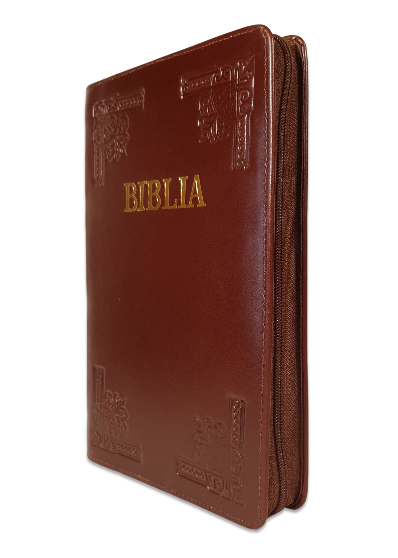 Biblie mare, piele, handmade, culoare maro inchis, fermoar, index, margini argintii, cuv. Isus cu rosu [SI 076 HM]