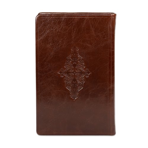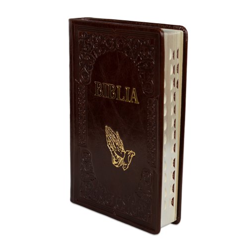 Biblie mare, piele, handmade, culoare maro, index, margini argintii, simbol maini in rugaciune, cuv. Isus cu rosu [SI 076 HM]