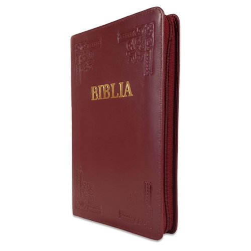 Biblie mare, piele, handmade, culoare visinie, fermoar, index, margini argintii, cuv. Isus cu rosu [SI 076 HM]