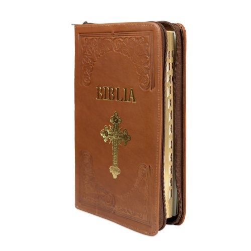 Biblie mare, piele, handmade, maro, index, margini aurii, cuv. Isus cu rosu [SI 076 HM]