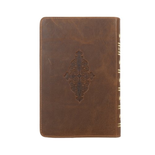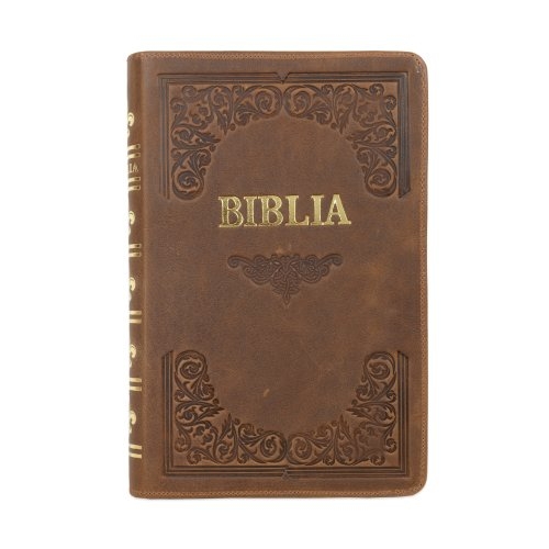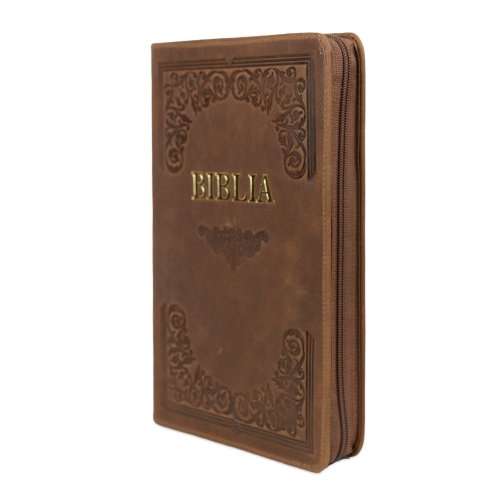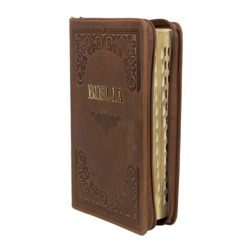 Biblie mare, piele, handmade, maro, index, margini aurii, cuv. Isus cu rosu [SI 076 HM]