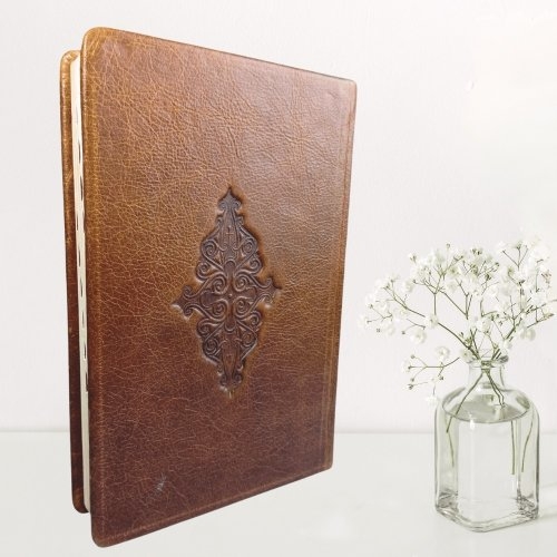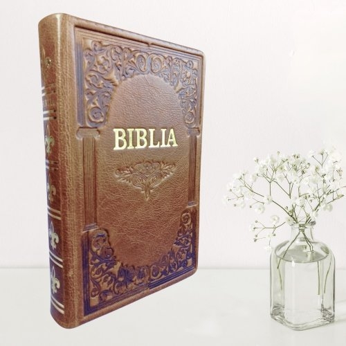 Biblie mare, piele, handmade, maro, index, margini aurii, cuv. Isus cu rosu [SI 076 HM]
