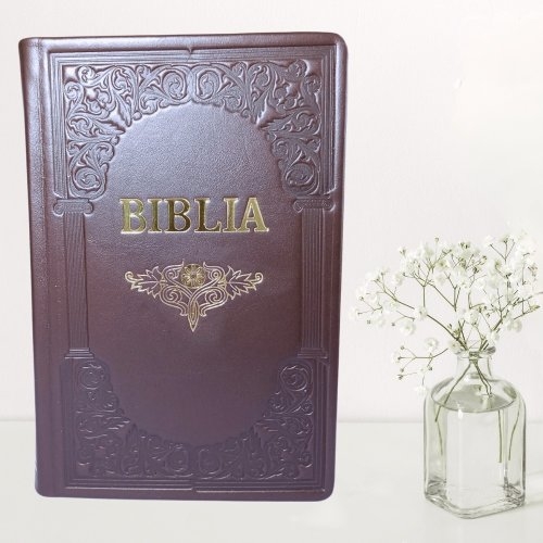 Biblie mare, piele, handmade, maro, index, margini aurii, cuv. Isus cu rosu [SI 076 HM]
