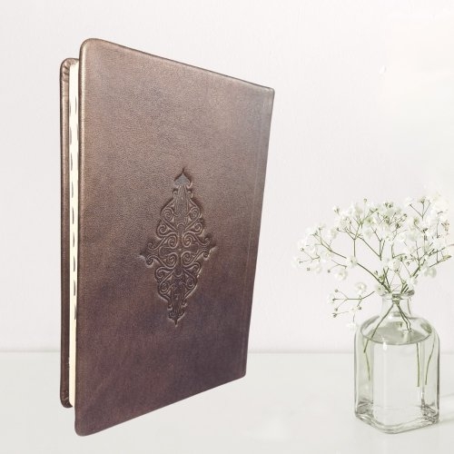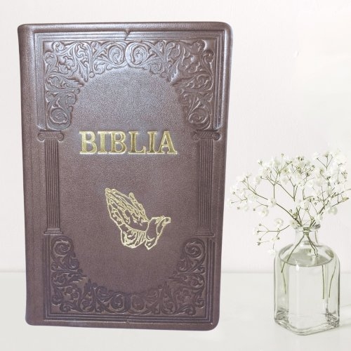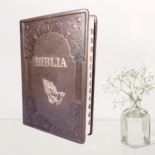 Biblie mare, piele, handmade, maro, index, margini aurii, cuv. Isus cu rosu [SI 076 HM]