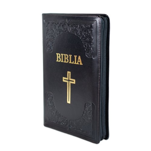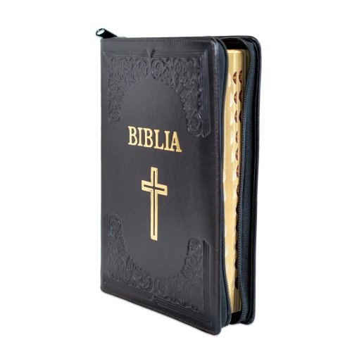 Biblie mare, piele, handmade, neagră, index, margini aurii, cuv. Isus cu rosu [SI 076 HM]