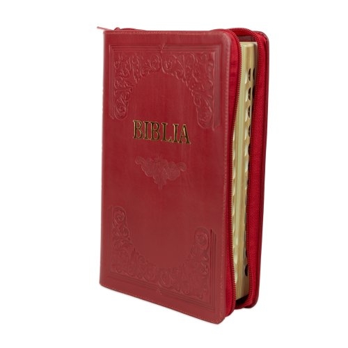 Biblie mare, piele, handmade, roșu închis, index, margini aurii, cuv. Isus cu rosu [SI 076 HM]